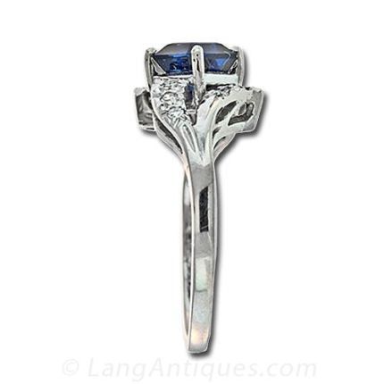 Darling 14K white gold sapphire and diamond ring centered with a 1.27 carat square emerald cut royal blue sapphire and accented by ten round cut diamonds (.10 carat total weight, G-H color, VS clarity).